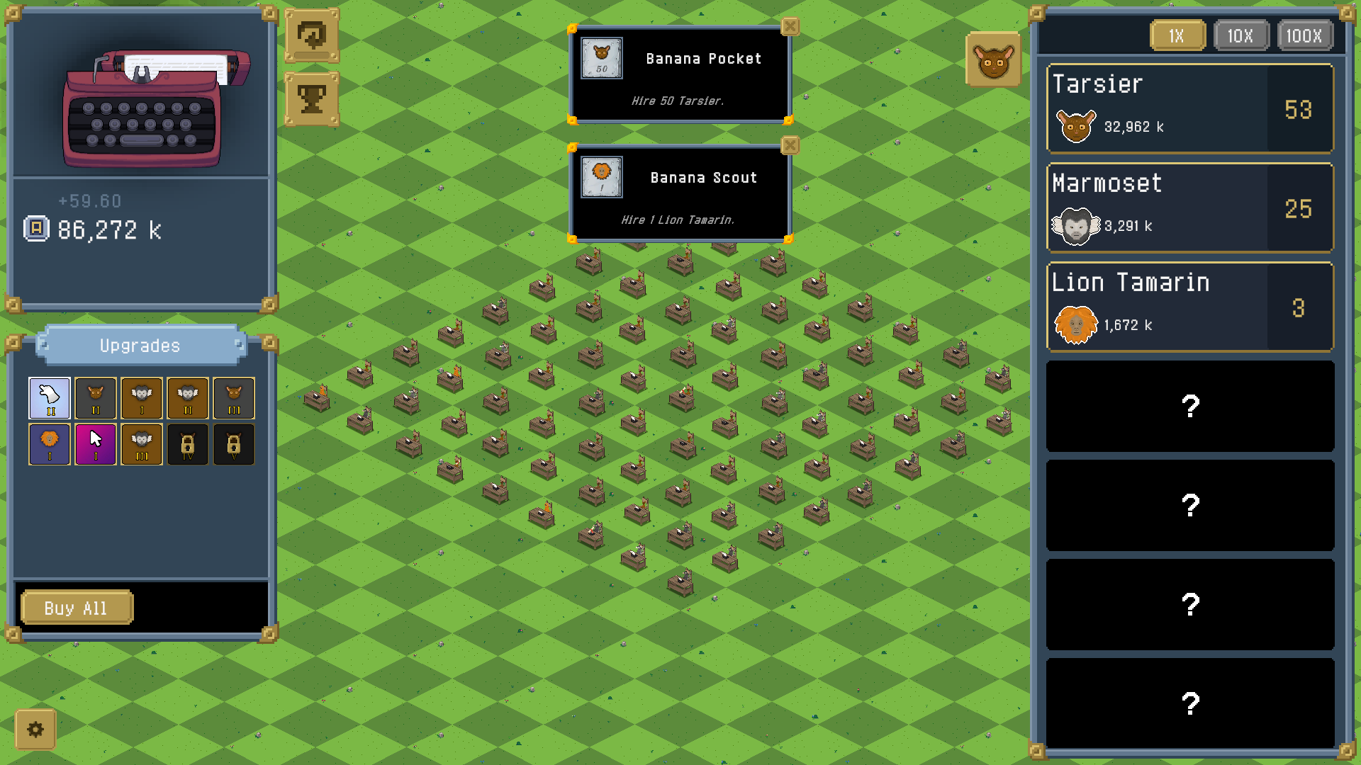 Infinite Monkey Clicker is a clicker game inspired by the Infinite Monkey Theorem. The idea that an infinite number of monkeys typing on typewriters could eventually write any text, even the greatest works of literature.