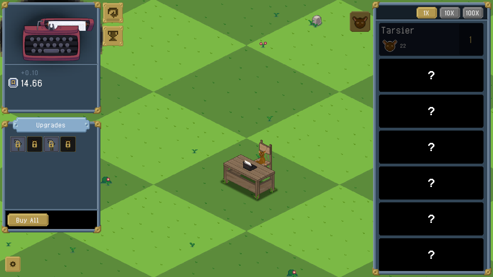 Upgrade and expand your operation by hiring more skilled monkeys and improving their tools. Watch your typewriters clack endlessly as your monkeys strive to produce meaning from madness.